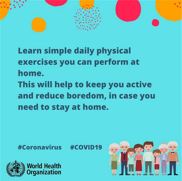 This will help to keep you active and reduce boredom, in case you need to stay at home.