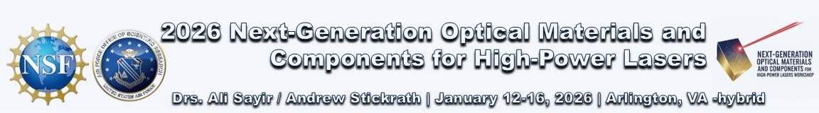 2026 Joint NSF-AFOSR Next-Generation Optical Materials for High-Power Lasers Workshop will be held hybrid, January 12-16, 2026, at the Basic Research Innovation Collaboration Center (BRICC). The BRICC is located at 4100 N Fairfax Drive, Suite 450, Arlington, VA 22203.