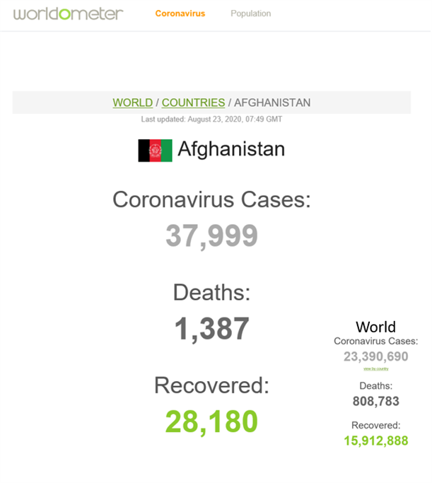 Afghanistan Coronavirus (COVID-19) Aug 23