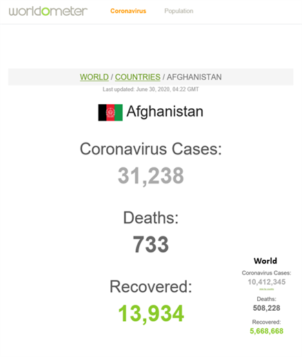Afghanistan Coronavirus (COVID-19) June 30